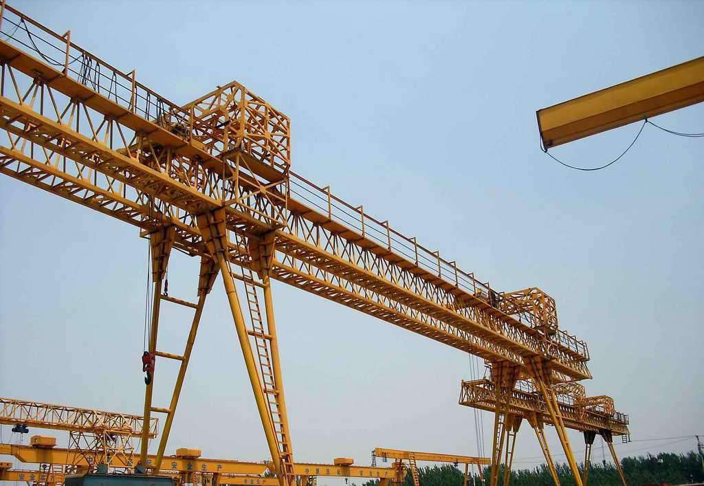 橋式起重機是橫架于車間、倉庫和料場上空進行物料吊運的起重設備。由于它的兩端坐落在高大的水泥柱或者金屬支架上,形狀似橋。橋式起重機的橋架沿鋪設在兩側高架上的軌道縱向運行,可以充分利用橋架下面的空間吊運物料,不受地面設備的阻礙。它是使用范圍最廣、數量最多的一種起重機械