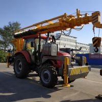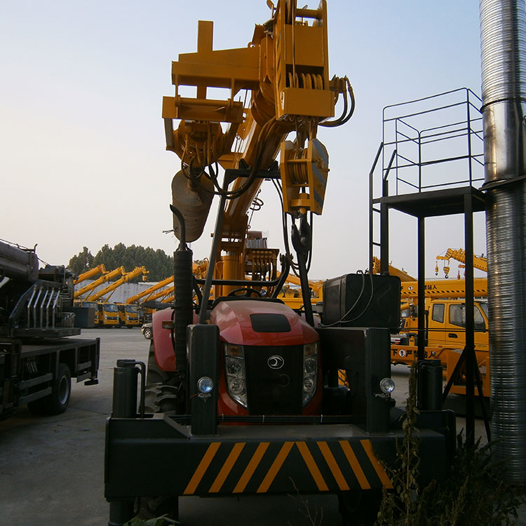 拖拉機吊車是一款高效、經濟、適用的產品。本機采用三橋專用汽車底盤,八檔變速箱,全覆蓋式走臺板設計,五節起重主臂,一節桁架式副起重臂。