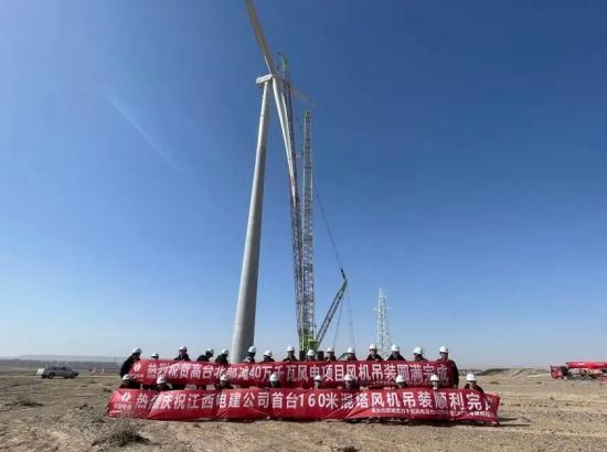 該項目是混塔風機安裝項目,混塔塔架相較于柔性鋼塔,對施工工藝要求更為嚴格。并且項目所在地地勢多為沙漠戈壁,平均每月有12天的大風氣候,風速可達15米至30米每秒,時有沙塵氣候產生,給施工造成極大影響。終究,施工方技能員們因地制宜,為項目部量身打造出了一套技能施工方案,作為主吊設備的ZCC13000履帶吊的安穩發揮,也為項目順利收官供給了強壯保障。