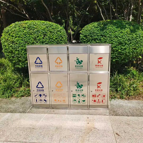 移動版: 四分類垃圾桶 室外果皮箱可回收 戶外不銹鋼分類大號垃圾箱