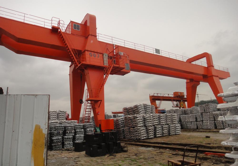 烏魯木齊門式起重機出租   龍門起重機的起升機構、小車運行機構和橋架結構,與橋式起重機基本相同。由于跨度大,起重機運行機構大多采用分別驅動方式,以防止起重機產生歪斜運行而增加阻力,甚至發生事故。龍門起重機的起重小車在橋架上運行,有的起重小車**是一臺臂架型起重機。橋架兩側的支腿一般都是剛性支腿;跨度超過30米時,常是一側為剛性支腿,而另一側通過球鉸和橋架連接的柔性支腿,使門架成為靜定系統,這樣可以避免在外載荷作用下由于側向推力而引起附加應力,也可補償橋架縱向的溫度變形龍門起重機的受風面積大,為防止在強風作用下滑行或翻倒,裝有測風儀和與運行機構聯鎖的起重機夾軌器。橋架可以是兩端無懸臂的;也可以是一端有懸臂或兩端都有懸臂的,以擴大作業范圍。半龍門起重機橋架一端有支腿,另一端無支腿,直接在高臺架上運行