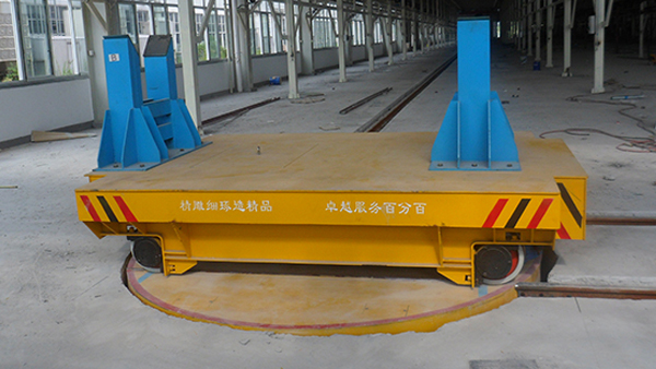 電動平車,又稱電動平板車、電平車、臺車、過跨車、電動軌道車、地爬車等,是一種廠內有軌電動運輸車輛,首先它是一種軌道型運輸車輛,需要在地面上鋪設軌道,軌道一般為工字型面接觸道軌;其次它是電驅動車輛,在電機減速機驅動下自動運行,再次它是一種平板車,臺面平整無廂蓋,特殊情況下也可以是非平面但無廂蓋,車體無方向盤只有前進后退方向(即使轉彎也城靠軌道轉彎)。此種車輛具有結構簡單、使用方便、承載能力大、不怕臟不怕砸、維護容易、使用壽命長等特點,因其方便、壯實、經濟、實用、易清理等諸多優點,成為企業廠房內部及廠房與廠房之間短距離定點頻繁運載重物的**運輸工具。