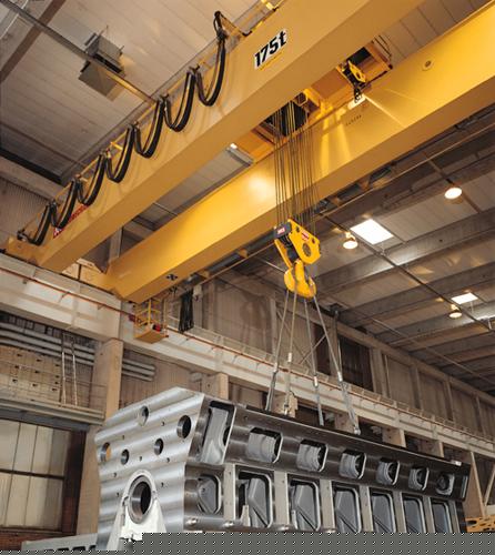 LH型電動葫蘆雙梁起重機是在70年**始生產(chǎn),江河集團經(jīng)過再設(shè)計的電動葫蘆作為起升機構(gòu)的雙梁起重機。器使用工作**為A1-A5,工作環(huán)境溫度為-25-40℃,適用起重量為5-32噸,跨度為7.5-22.5米,起重機運行速度為30-75米/分鐘的系列產(chǎn)品。其操縱方式有地面操縱和操縱室操縱。該起重機適用于中等載荷的車間、倉庫、料場、電站的裝配、檢查和裝卸工作。但不適用在有爆炸危險和火災(zāi)的危險的介質(zhì)中工作,不適用于在相對濕度大于85%的場所和充滿腐蝕性氣體的介質(zhì)中工作,不適用吊運熔化金屬、有毒物品和易燃易爆物品。