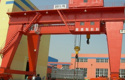 它的金屬結構像門形框架,承載主梁下安裝兩條支腳,可以直接在地面的軌道上行走,主梁兩端可以具有外伸懸臂梁。