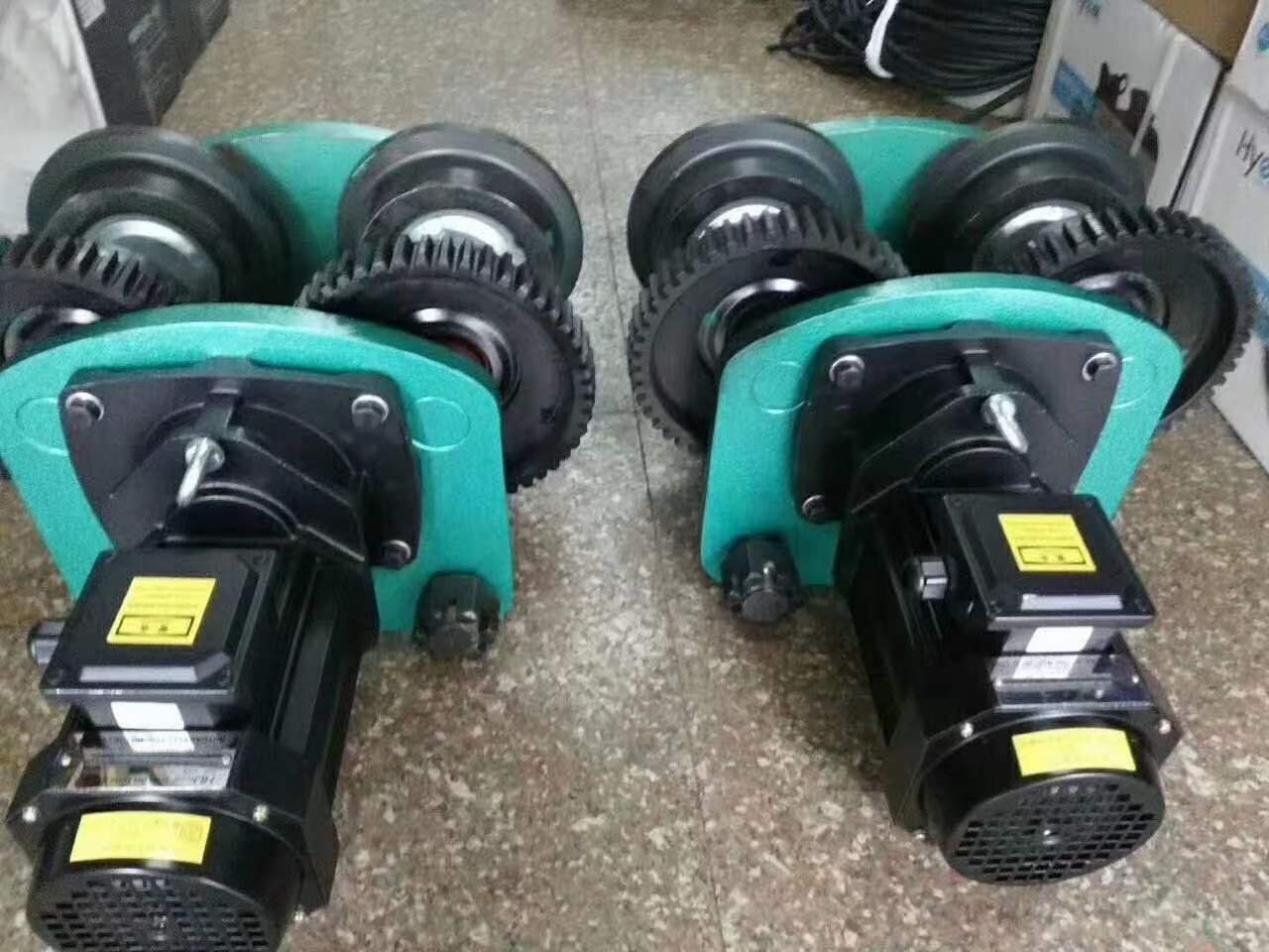 電動葫蘆跑車又稱電動葫蘆運行小車平衡裝置,包括小車和主動車輪、軸,主動車輪傳動軸由減速電動機驅動,小車上還裝有被動車輪傳動軸,被動車輪傳動軸通過軸承和安裝在小車上,被動車輪傳動軸的兩端裝有兩個被動車輪。當電動葫蘆小車在不平行的軌道上運行時,隨時可以自動調整兩個被動車輪的**高度,使小車在運行過程中四個車輪始終落在軌道上,接觸平穩,受力均勻,大大的減少了整機的噪聲,確保電動葫蘆行駛。