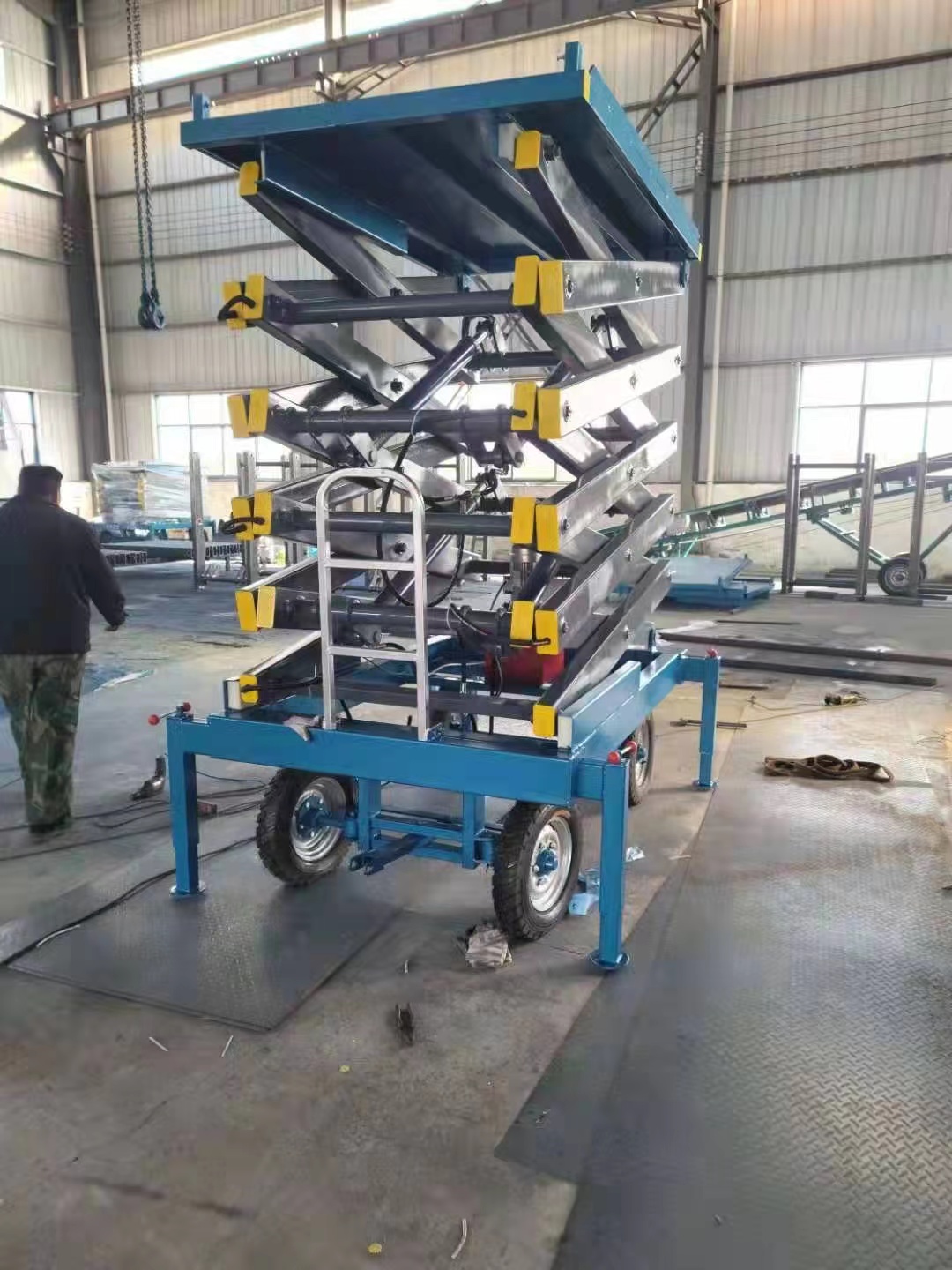 升降平臺是一種多功能起重裝卸機械設備。升降平臺升降系統,是靠液壓驅動。它使高空作業效率更高,安全更保障。可分為固定式和移動式。我公司的升降平臺品種多,樣式多,具有重量輕、自行走、電啟動、自支腿、操作簡單、作業面大,能跨越障礙進行高空作業等360度自由旋轉優點。