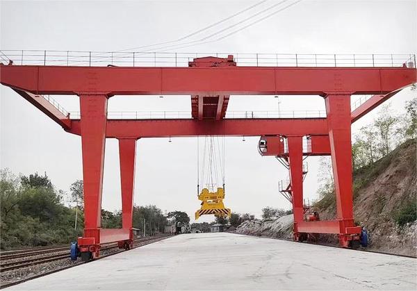 門架式起重機具有場地利用率高、作業范圍大、適應面廣、通用性強等特點,在港口貨場得到廣泛使用。它的金屬結構像門形框架,承載主梁下安裝兩條支腳,可以直接在地面的軌道上行走,主梁兩端可以具有外伸懸臂梁。