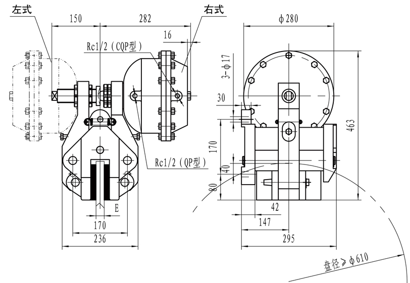 概述: QP(CQP) 系列氣動鉗盤制動器主要用于起重、運輸、冶金、礦山、港口、建筑等機械中各種機構的制動和減速。