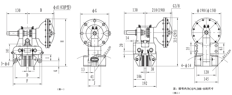 CQP38B型技術參數見表五,外形尺寸見表六,結構見圖一