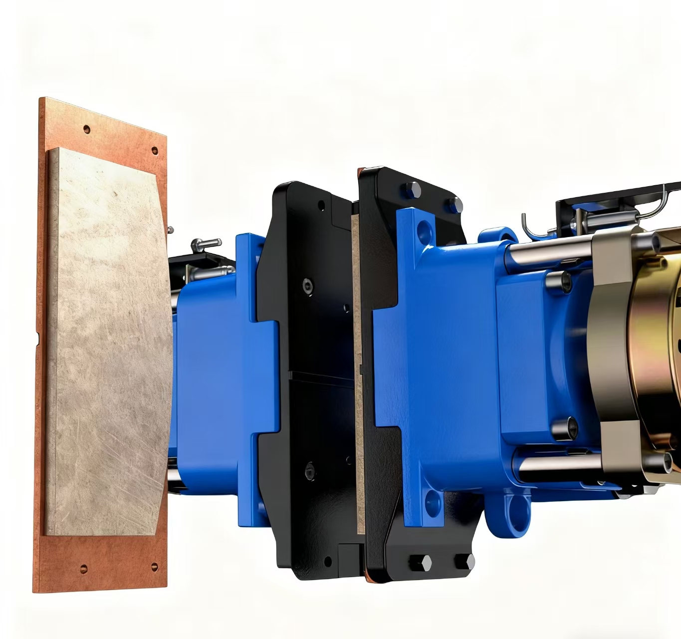 4. 摩擦片與制動(dòng)盤(pán)接觸面積大,摩擦片為無(wú)石棉銅基粉末冶金材料,能適應(yīng)高溫高負(fù)荷重載工況,保證制動(dòng)時(shí)摩擦系數(shù)穩(wěn)定